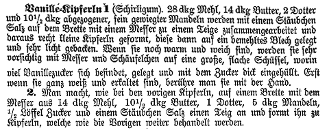 Diese Vanillekipferl stammen aus dem historischen Kochbuch "Die österreichische Küche" von Marie von Rokitansky