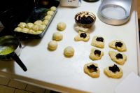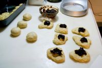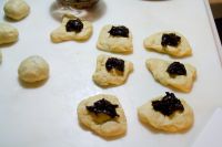 Füllen mit Marillenmarmelade oder Powidl (ev. auch Topfen- oder Mohnfülle).