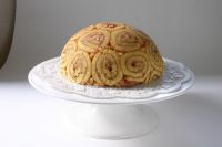 Wird die Bombe nicht ausgelegt, kann man sie nachträglich mit Gelee überziehen oder auch mit Schlagobers und Erdbeeren dekorieren.
