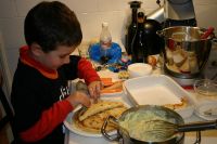 Für die Crespelle aus den Zutaten einen Teig bereiten und Palatschinken backen (dünn).