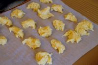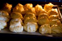 Herstellung wie Brandteigkrapferl - zum Schluss kommt noch der geriebene Käse dazu: