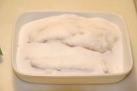 Le placer peau au dessous dans un plat creux et le poivrer légèrement. Répartir ensuite 2 grosses cuillérées à café de gros sel sur la chair.