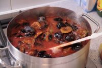 Danach ev. pürieren (Mixstab) und über mehrere Stunden langsam kochen (öfter umrühren nötig), bis die gewünschte Konsistenz entsteht.