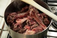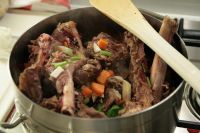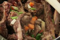 Wildfond läßt sich gut aus Karkassen vom Reh oder Hirsch zubereiten. Ich mache ihn immer im Anschluß an einen Rehrücken-Braten.