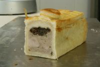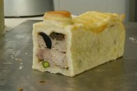 Meine Fasanenpastete aus Fasanenbrüsteln und Kalbfleisch. Teigmantel, Gelee zum Auffüllen ... und kräftig würzen nicht vergessen!