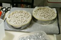 17. Mai 2012: Bei der Herstellung von 5 Torten mit 18cm Durchmesser war folgendes Mengengerüst erforderlich: Ich verwendete diesmal den weniger gezuckerten Mürbteig nach Teubner Kuchen und Torten - und zwar 150% (was mengenmäßig 300% des Mürbteigs nach Harry's Bar entspricht) - das hat gut gereicht (ausgerollt auf 5mm Stärke für Boden und Rand; Rand ca 2,5 - 3cm hoch). Für die Creme habe ich 300% genommen - was eine Spur zu wenig war - also besser 350% oder 400%. Die Baisermasse hat für das abdecken gut gereicht.