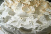 Baisermasse aufstreichen und mit Spatel dekorieren. Etwas Kristallzucker aufstreuen. Unter dem Grill kurz Farbe nehmen lassen. Kühlen bis zum Servieren.