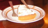 Anmerkung: an den Originalfotos ist zu erkennen, dass die Torte in Harry's Bar mit relativ dickem Mürbteig und relativ wenig Creme angefertigt wird (sonst vermutlich zu schwer). Die Schneehaube reicht (im Unterschied zur Abbildung im Kochbuch) nicht über den Mürbteigrand hinunter. Nach Auskunft des Test-Essers (Frau Ursula Harrand) ist gesichert, dass die Schneehaube zwar abgeflämmt aber keineswegs "gegart" oder trocken ist.