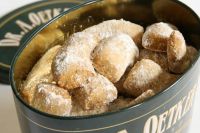 Für das Bestäuben habe ich Staubzucker mit Vanillezucker im Foodprocessor mehlfein zerrieben (der Vanillezucker ist sonst zu grob und vermischt sich nicht gut mit dem Staubzucker bzw. haftet nicht gut am Keks).