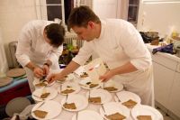 Der Gourmet-Journalist und Reiseprofi - der Connaisseur Robert Kropf hatte für den Abend des 2. Februar 2011 zu einem Gala-Dinner für 24 Personen in noble Räumlichkeiten in der Nähe des Schwarzenbergplatzes geladen - und seinen Freund, den Haubenkoch Joachim Gradwohl als Koch verpflichtet. Eine glückliche Fügung brachte mich in die Situation, zusammen mit meiner Tochter Anna als Küchenhilfe mit dabei zu sein.